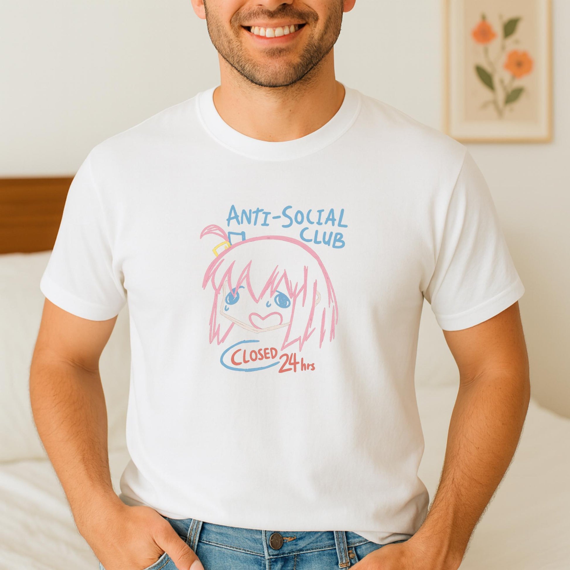 Anti Social Club Anime T-Shirt, Kawaii Sad Girl Tee, Funny Introvert Shirt, Closed 24hrs Graphic Tee, Pastel Aesthetic Anime Top