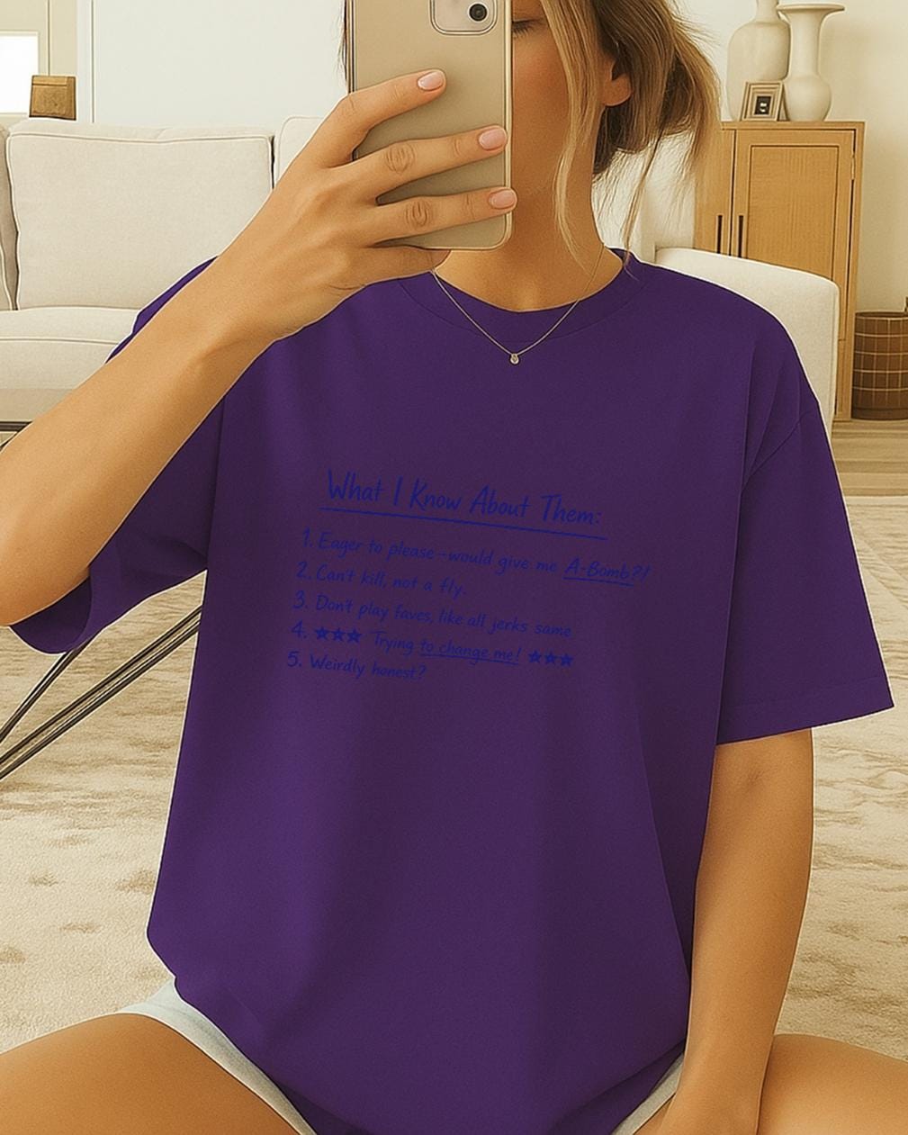 This fan-made t-shirt features the handwritten-style notes Carol writes on the board in Pluribus — a quiet but sharp moment that perfectly captures the show’s dark humor and psychological tension.