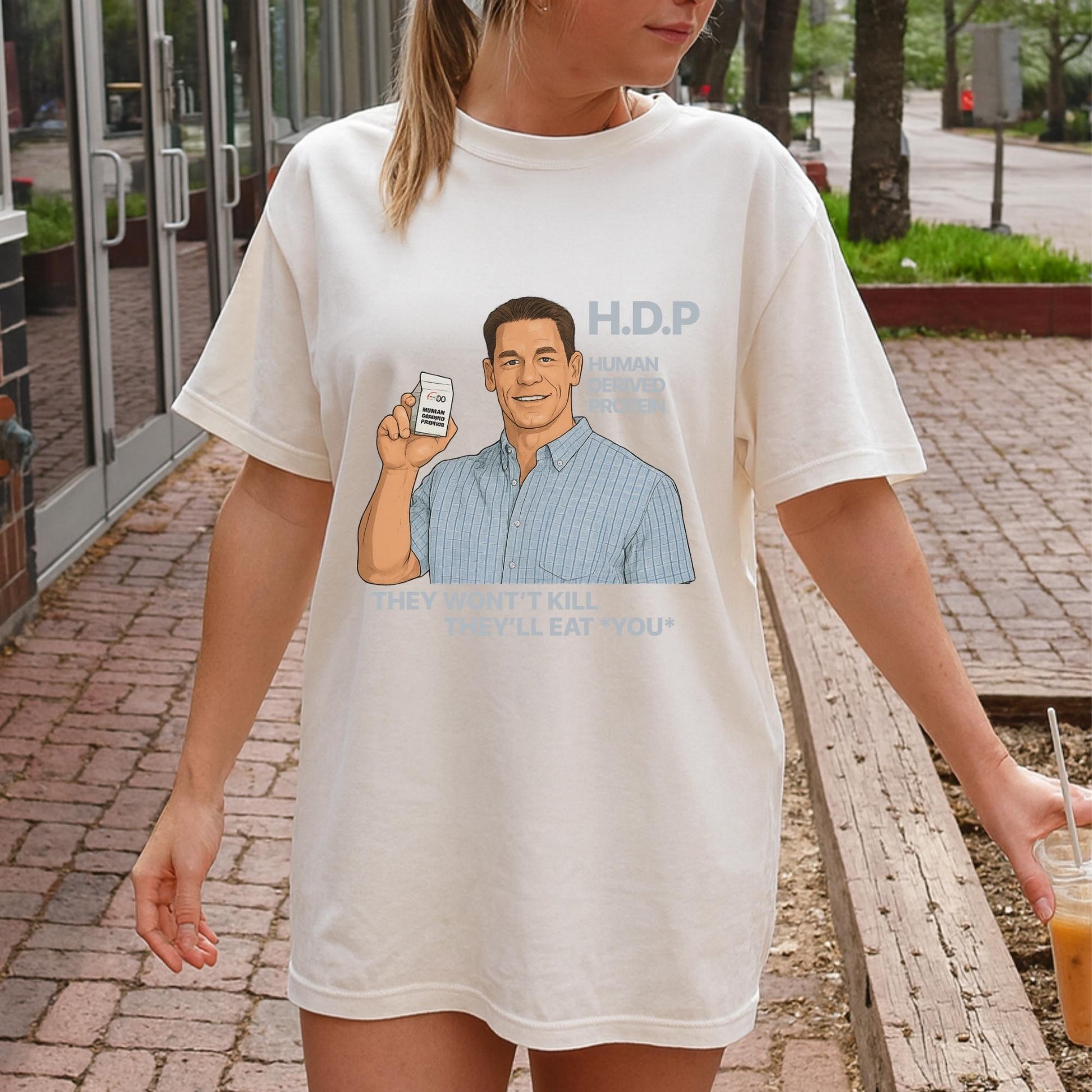 Pluribus HDP T-Shirt, John Cena Human Derived Protein Shirt, Pluribus Series Iconic Scene Tee, Sci-Fi Dark Humor Unisex Shirt