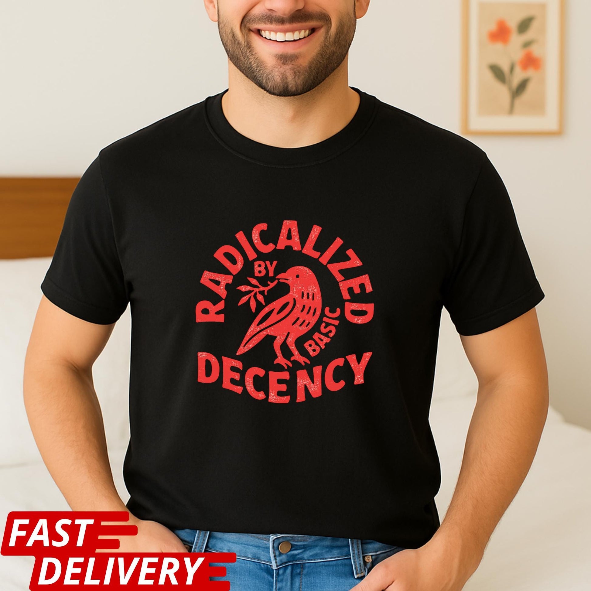 Radicalized By Basic Decency Shirt, Kindness T-Shirt, Peace Dove Tee, Positive Message Shirt, Minimal Graphic Tee, CottonBody Comfort Tee