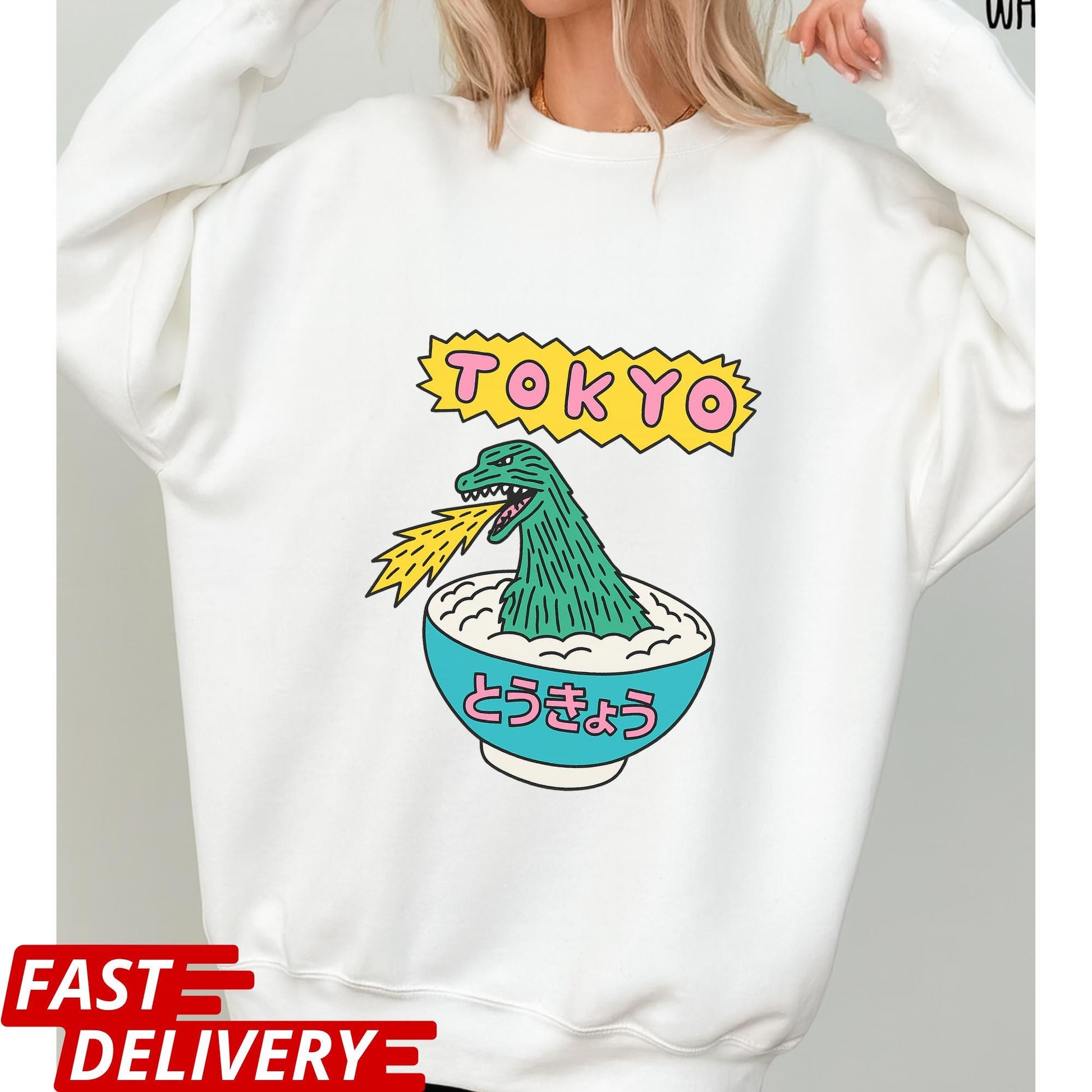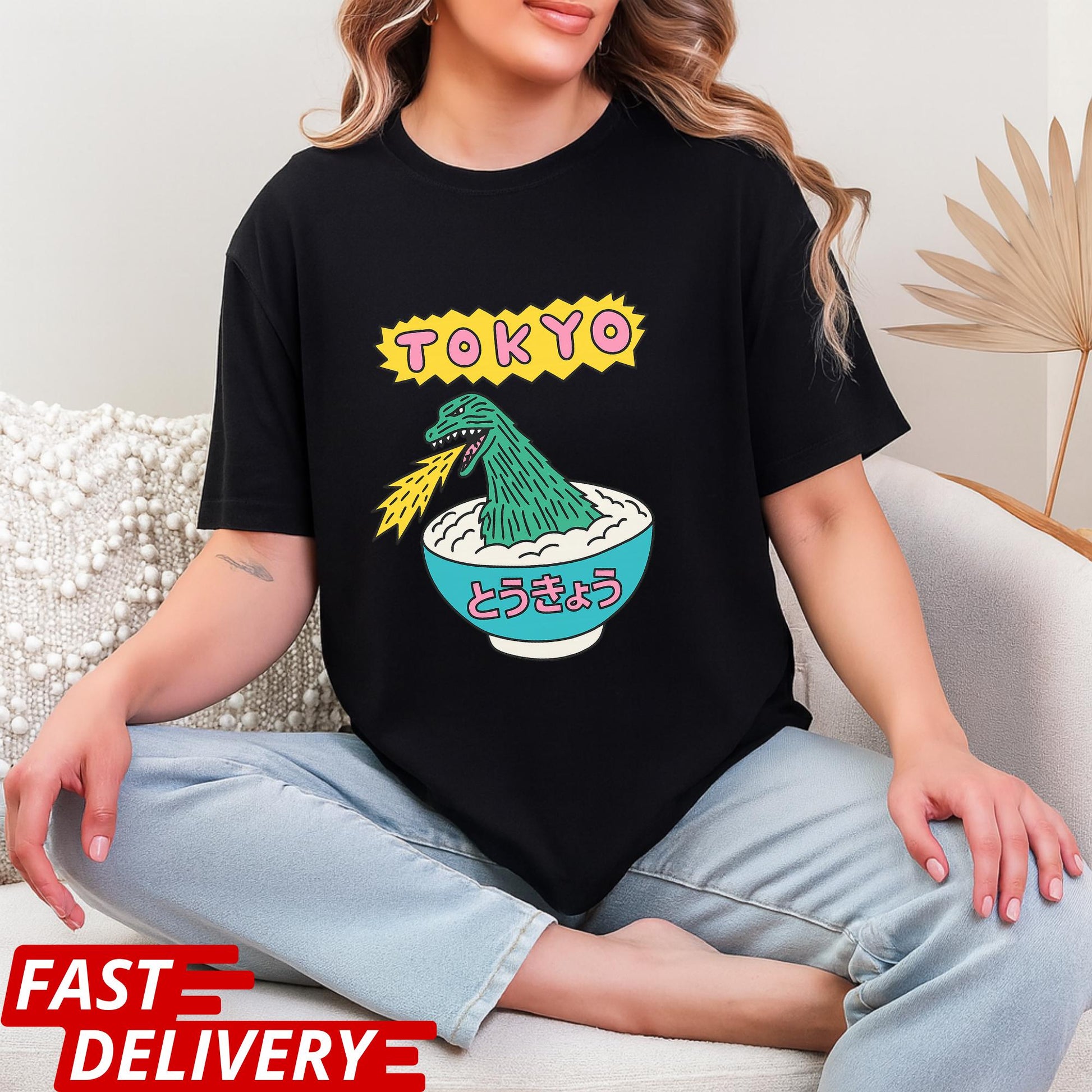 Tokyo Ramen Monster Shirt, Funny Japanese Food T-Shirt, Godzilla Noodle Bowl Tee, Kawaii Japan Graphic Tee, Cool Tokyo Streetwear